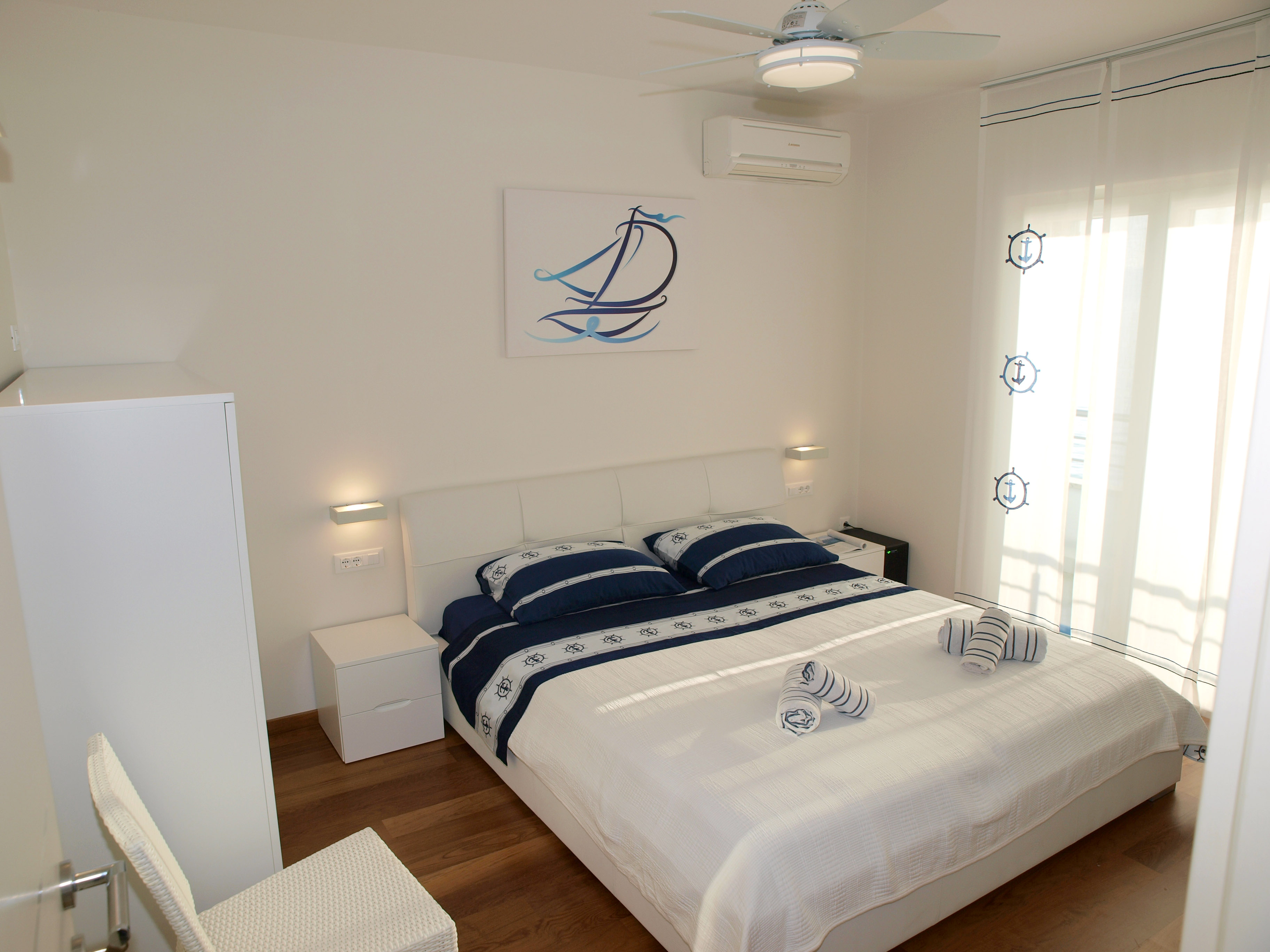Sama Villa raspolaže s 4 moderno opremljene spavaće sobe te dvije prostrane kupaonice, po jedna na svakoj etaži kuće. Na gornjoj etaži nalazi se balkon, a iz svih spavaćih soba na prvom katu pruža se jedinstven pogled na more.